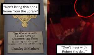 “This is the real doll that The Conjuring and Annabelle movies are based on. It’s said to be haunted with a backstory dating to the 1970s. The actual doll is located in Ed and Lorraine Warren’s Occult Museum in Monroe, Connecticut.” – u/TheGamingMethodist