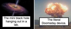 “The particle accelerator, because of the fact that humans have somehow learned how to handle and gather subatomic particles and smash them together causing newer more volatile particle creation.” – u/munchinhero
