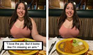 Honestly, the photoshop alteration is kind of giving a bit of a “The Thing” vibe, and I’m not hating it. Can’t imagine that the boyfriend who stars in this photo is particularly a fan though.