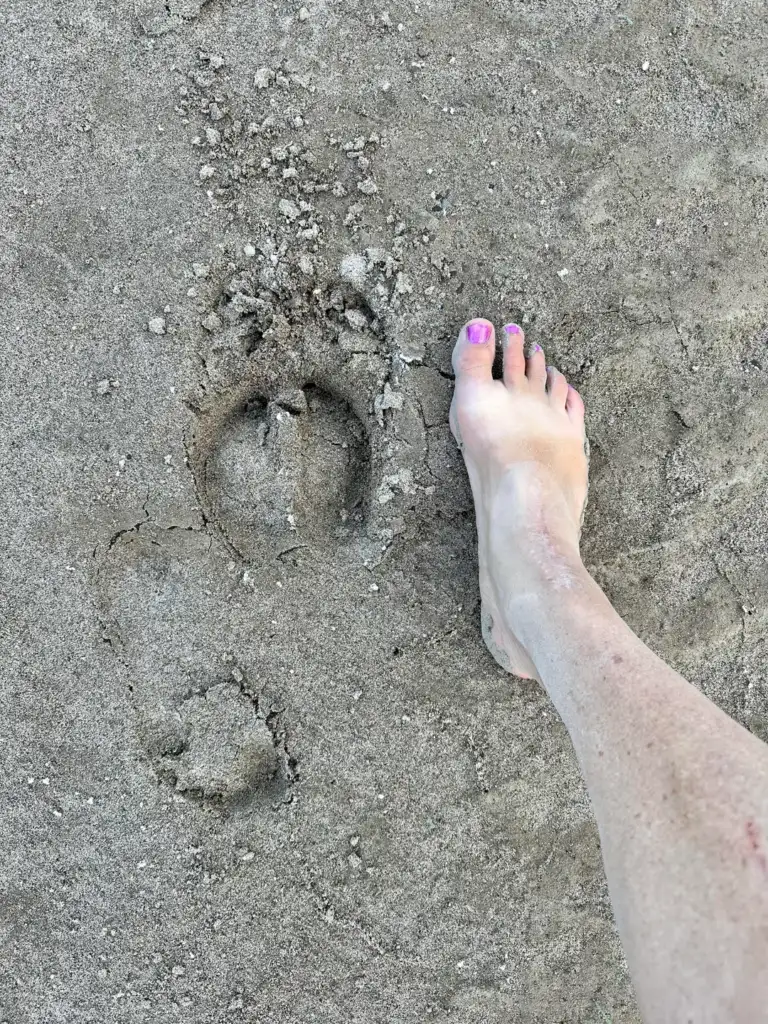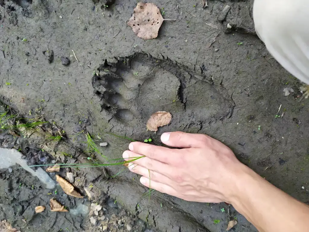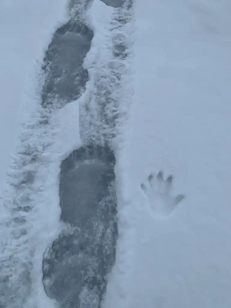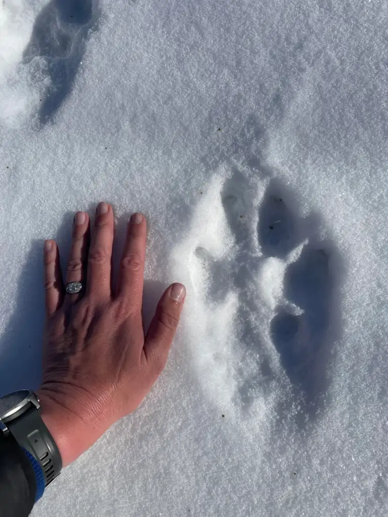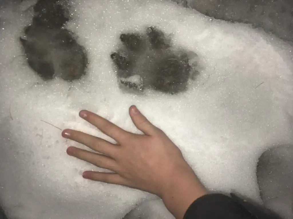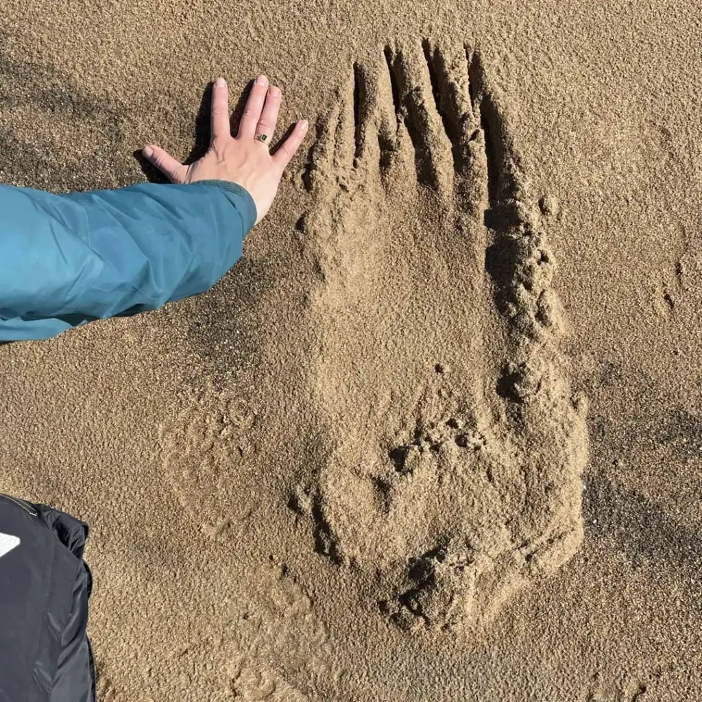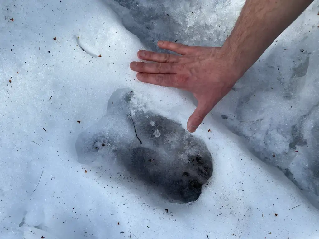7. The size of a polar bear track vs an adult male hand print is insane.