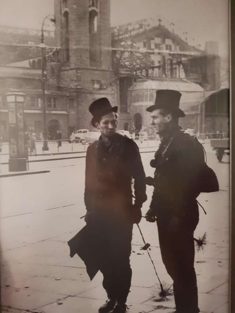 68. “My grandfather (left) and a friend in front of the Central Station in Hamburg in 1948. He was a chimney sweep.”