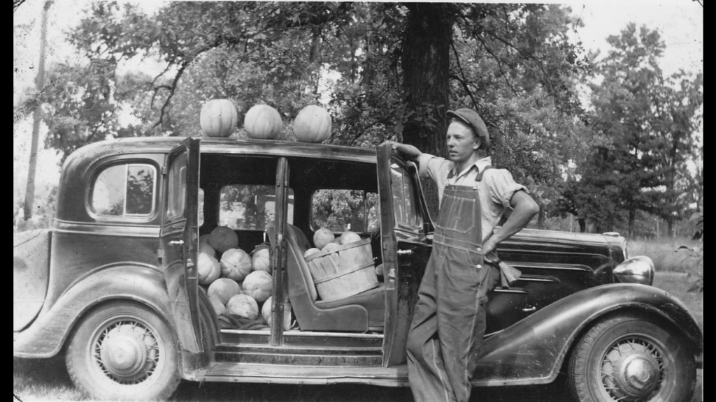 13. “My Grandpa selling melons from his car in 1941.”