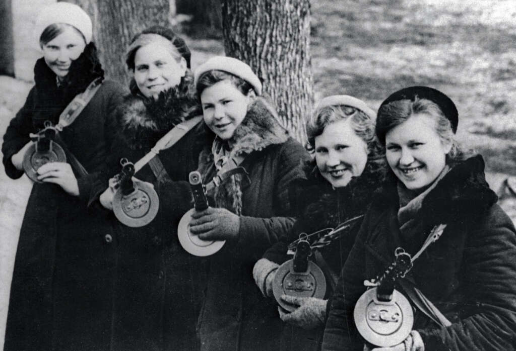 72. “Ukrainian women take up ‘tommy-guns’ for service in regular guerilla units in 1942.”