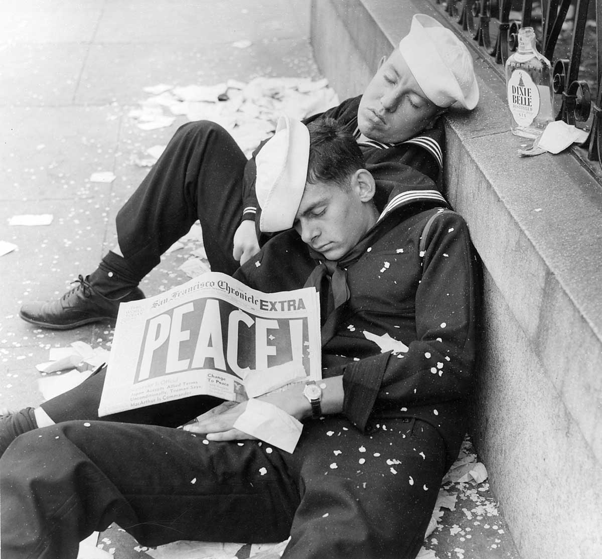 16. “Two sailors sleeping off their celebration of the end of WWII in 1945.”
