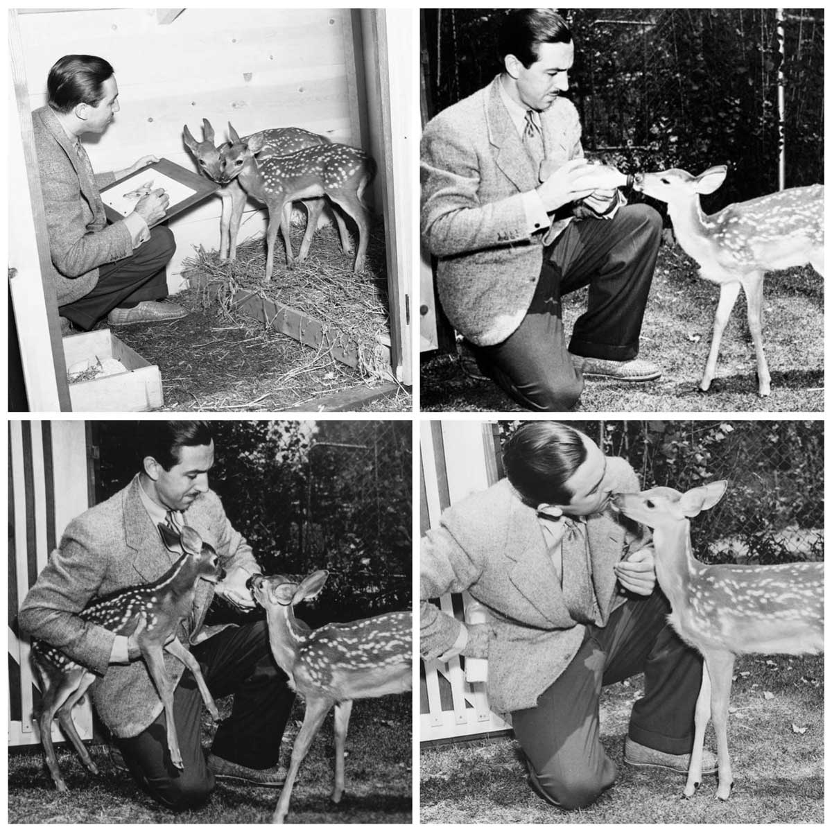 9. “Walt Disney sketching and interacting with deer that acted as reference models for Bambi, in 1942.”