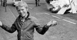 9. A little boy turns a corner in Belfast, Northern Ireland, 1970s