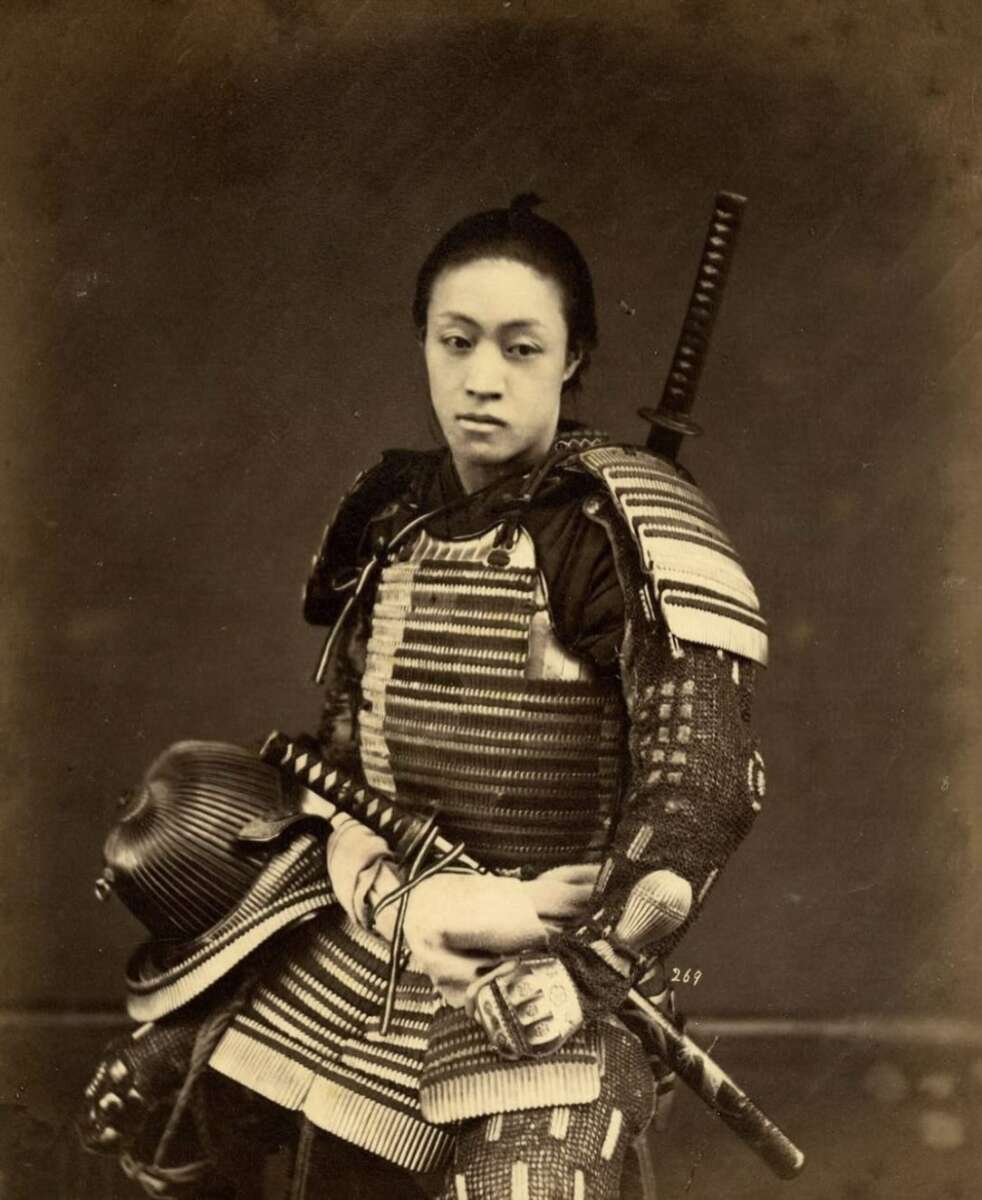 6. A portrait of a man wearing samurai armor back in the 1870s