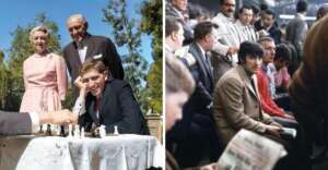 9. Bent Larsen and Bobby Fischer playing chess, circa 1965
