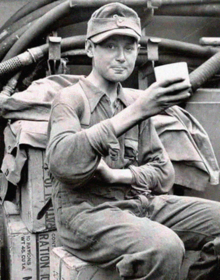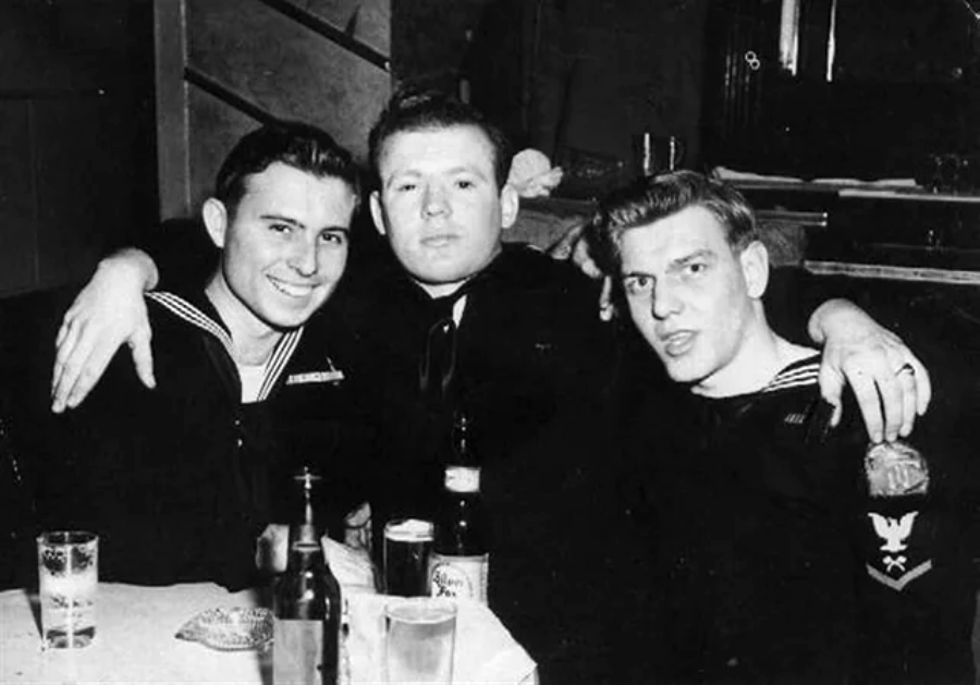 10. Three Sailors Share a Drink Before Going Ashore on Iwo Jima, 1944