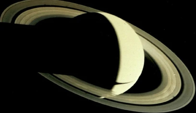 A black-and-white photo of one of the planets of the solar system. This is where the first raw photos of Jupiter and Saturn would be analyzed.