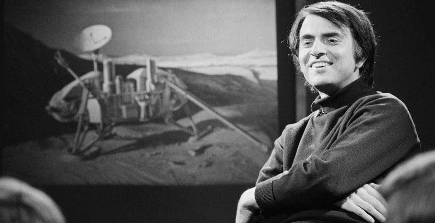 Sagan smiles while talking about the disc he helped create. The photo feels casual, but the project that was sending Earth´s essence into space was profound.