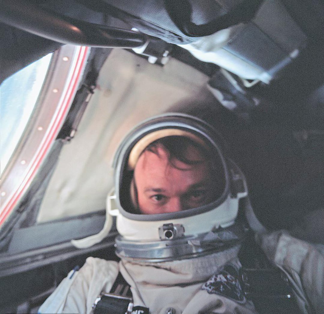 16. NASA astronaut Michael Collins inside the Gemini 10 spacecraft, 1969