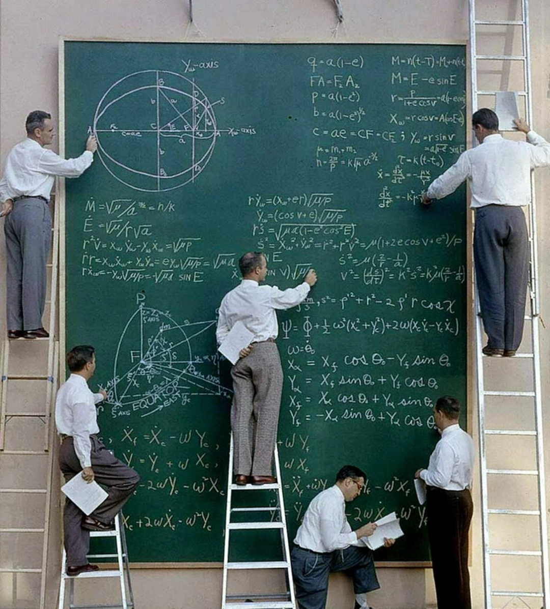 6. NASA scientists working out calculations on a chalkboard, 1961