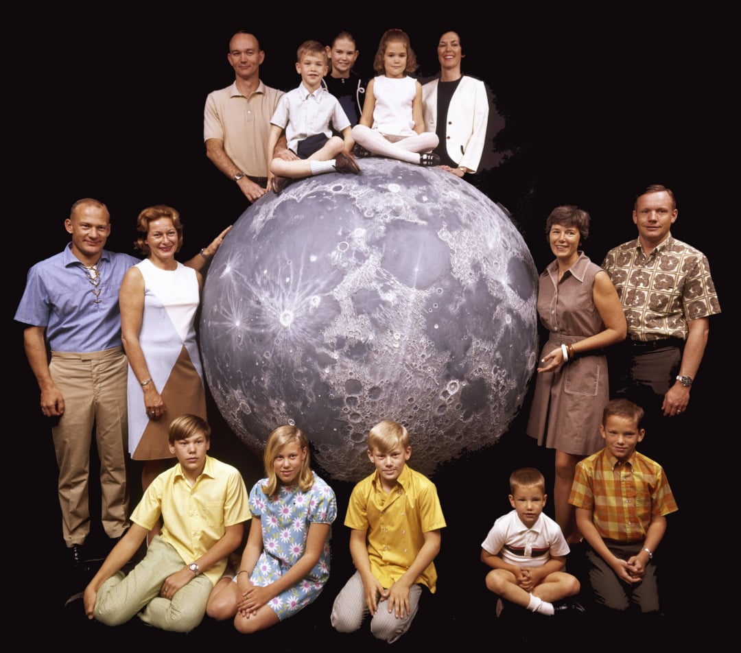 8. NASA astronauts Michael Collins, Buzz Aldrin, and Neil Armstrong with their families, four months before Apollo 11 launched from Cape Kennedy, 1969