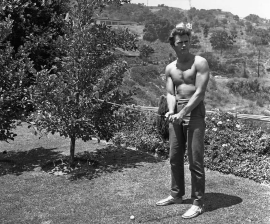 9. Actor Clint Eastwood playing golf in the Hollywood Hills, 1960