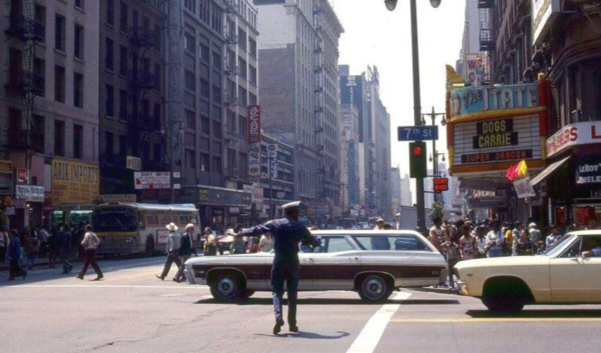 Still buzzing with department stores, traffic, and street performers, this intersection captures the last breath of old downtown before redevelopment swept through.
