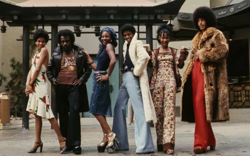 A street-style shoot captured Afro-centric fashion and Black pride during the 1970s, showcasing bold patterns and unapologetic flair.