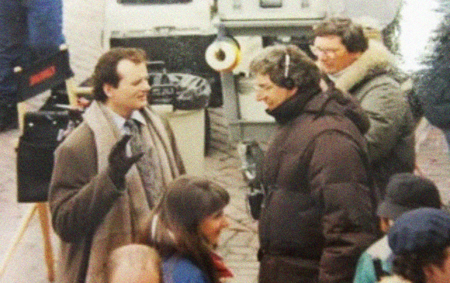 12. Bill Murray and Harold Ramis share a moment on Groundhog Day, 1992