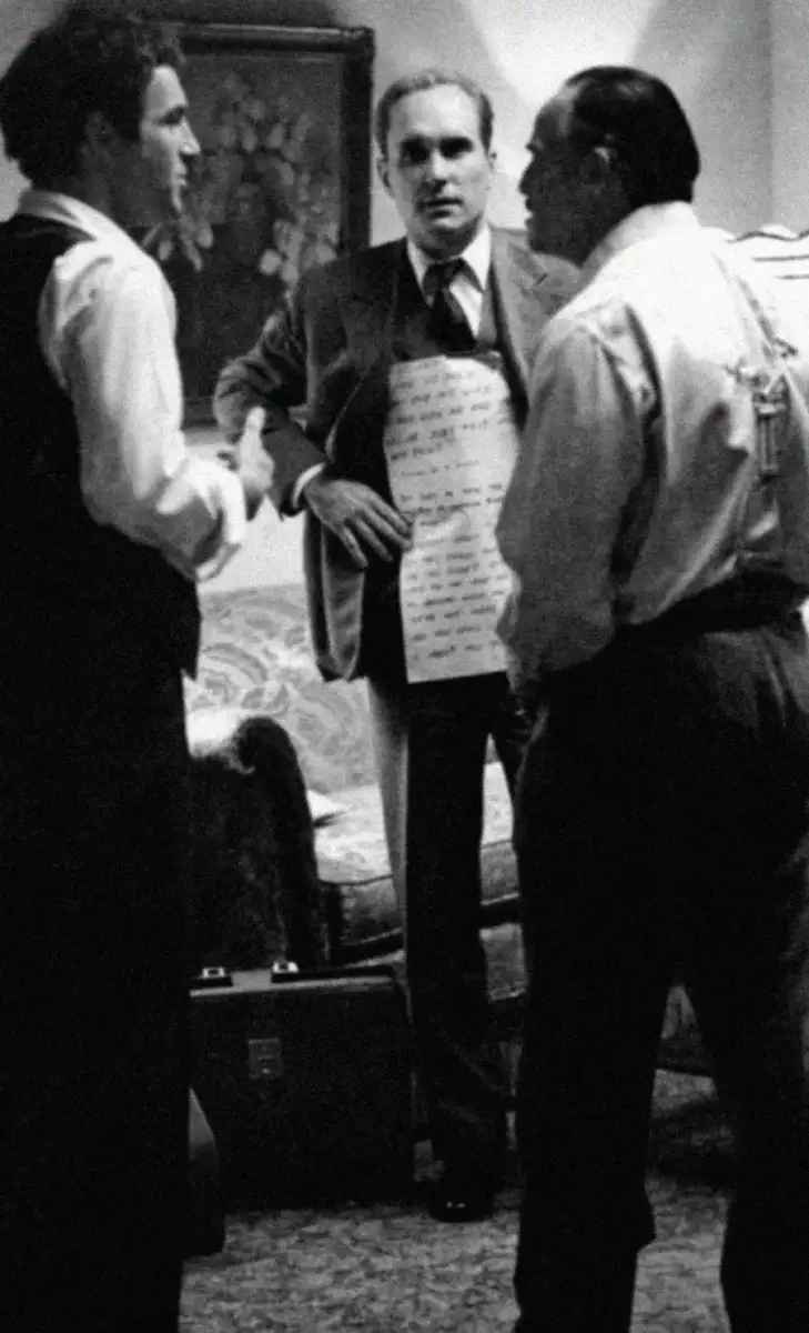 8. Robert Duvall helps Marlon Brando remember some lines on The Godfather, 1972