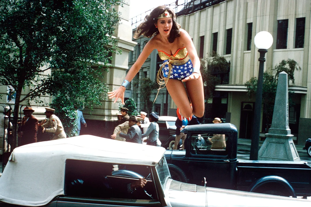 4. Lynda Carter leaps over a car in Wonder Woman, 1975