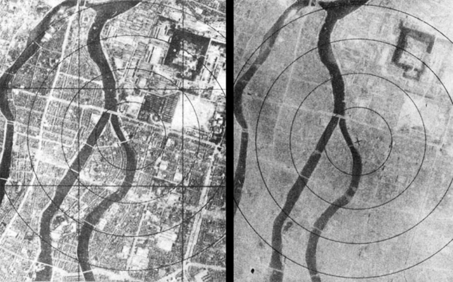 12. The stark contrast of Hiroshima before and after the detonation of “Little Boy” captured in side-by-side images