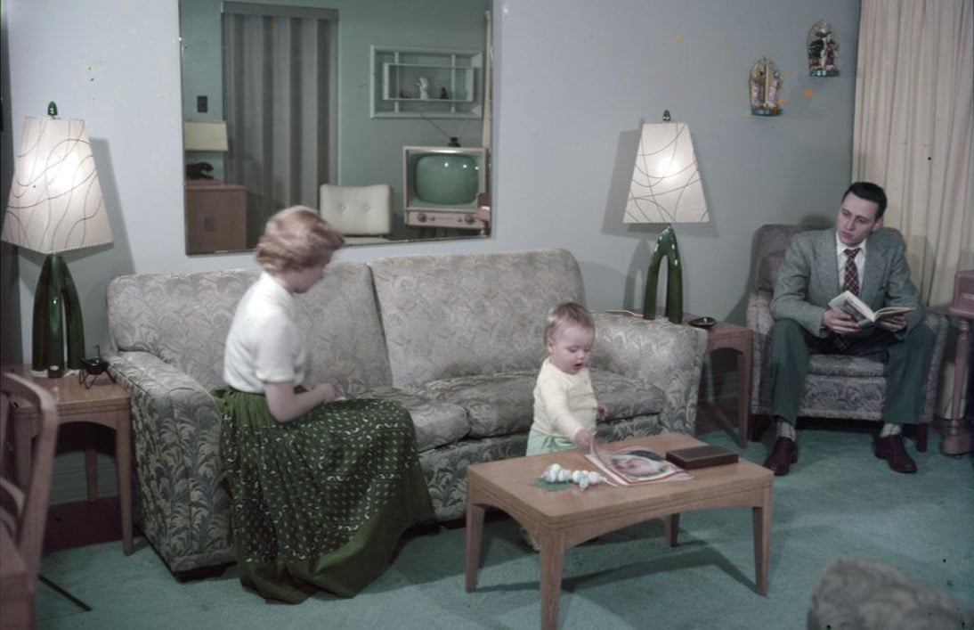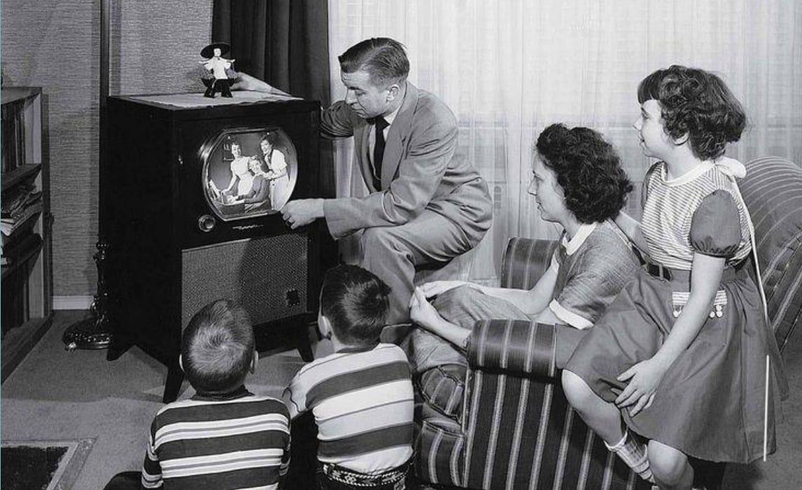 TV was a novelty in the 50s, and families would gather around their black-and-white sets to watch shows like The Ed Sullivan Show or I Love Lucy, often all at once in the same room.