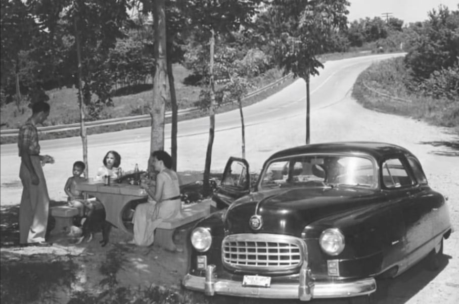Parks were a popular weekend destination. families packed sandwiches, lemonade, and potato salad in metal coolers for laid-back afternoons on the grass.