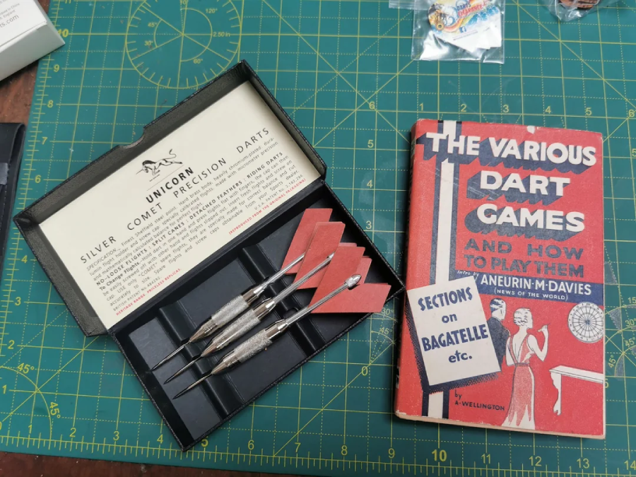 Before soft tips and cork targets, these darts were basically little javelins for living rooms. Miss by an inch and you decorated the wall -or the wainscoting- with a new hole. “Stand back” was the only posted rule.