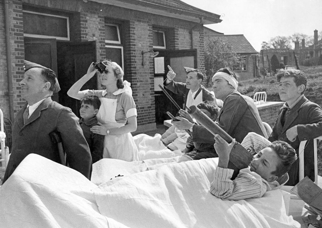 18. Nurses and patients watching dogfights at the height of the Battle of Britain