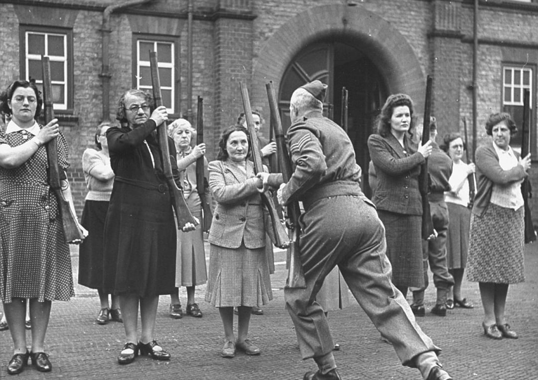 3. A British Sergeant training members of the “Mum’s Army,” a Women’s Home Defense Corps during the Battle of Britain, 1940