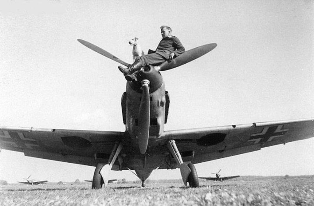9. German Messerschmitt 109 Pilot Relaxing with his Terrier before taking off for the Battle of Britain