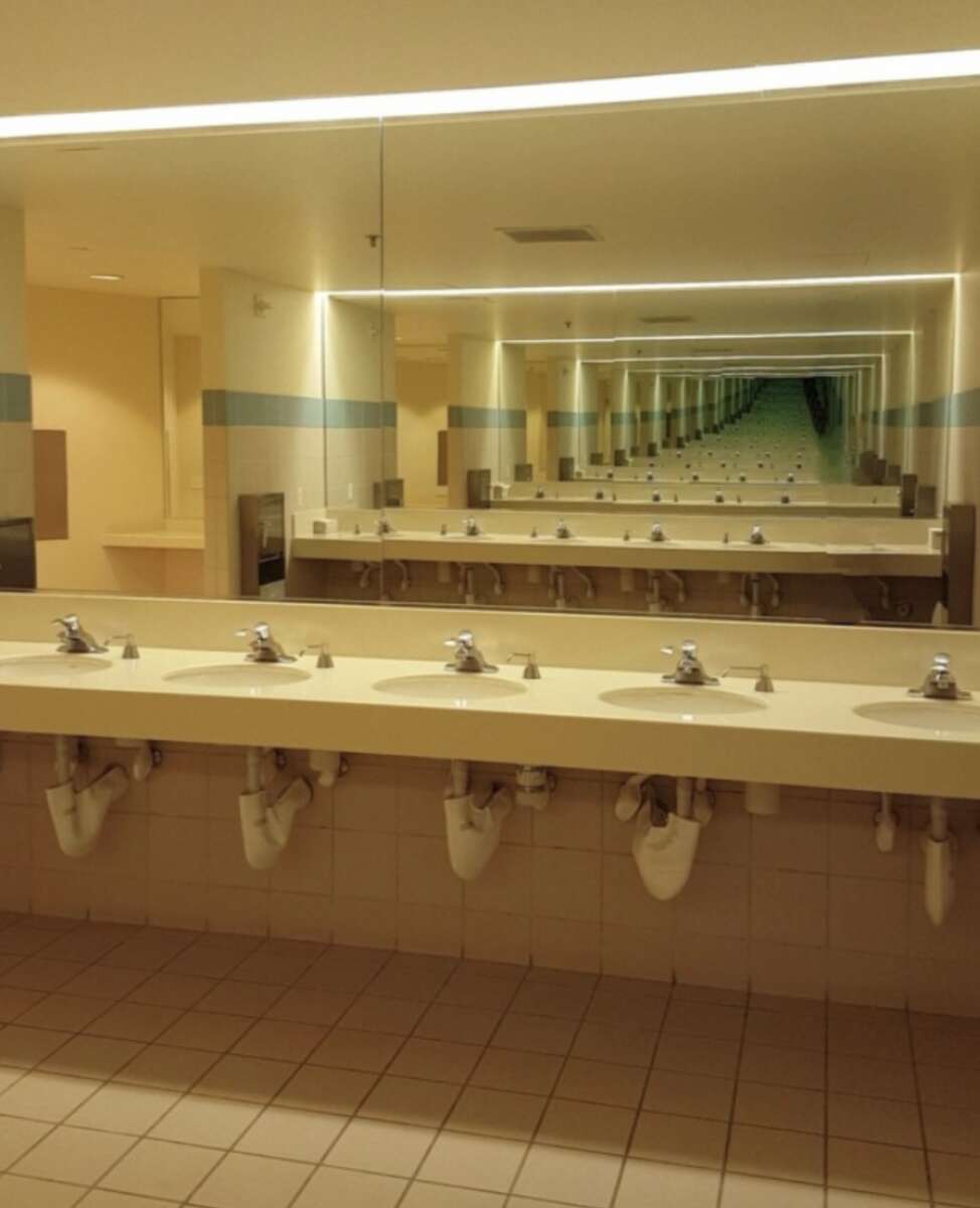 Liminal spaces are inherently eerie. They exist as these in-between places that at once feel both familiar and also weirdly unsettling. Liminal spaces will oftentimes feature hallways with no doors, abandoned malls, or empty parking garages at nighttime.