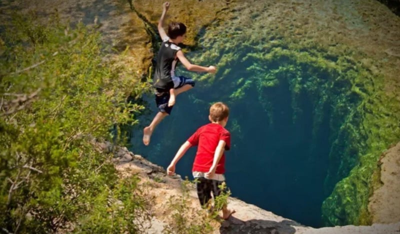 A deep, dark patch of lake looks like it drops endlessly into nothingness. It taps into that primal fear of what lurks below. Perfect nightmare fuel for anyone, especially when it’s just 9 metres deep.