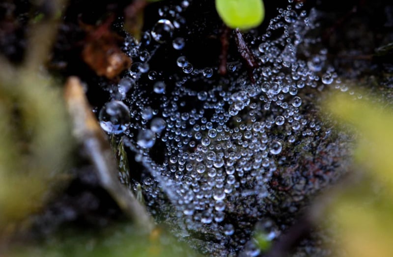 captures mid-air, droplets of water look like they´re levitating. With this light, this spider web creates magic in nature.