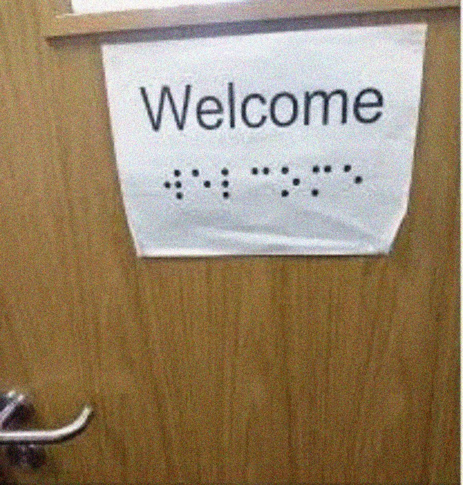 14. Braille printed on flat paper; “Welcome”… to the problem