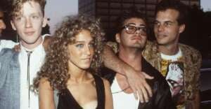 10. Anthony Michael Hall, Sarah Jessica Parker, Robert Downey Jr, and Bill Paxton at the premiere of Weird Science, 1985
