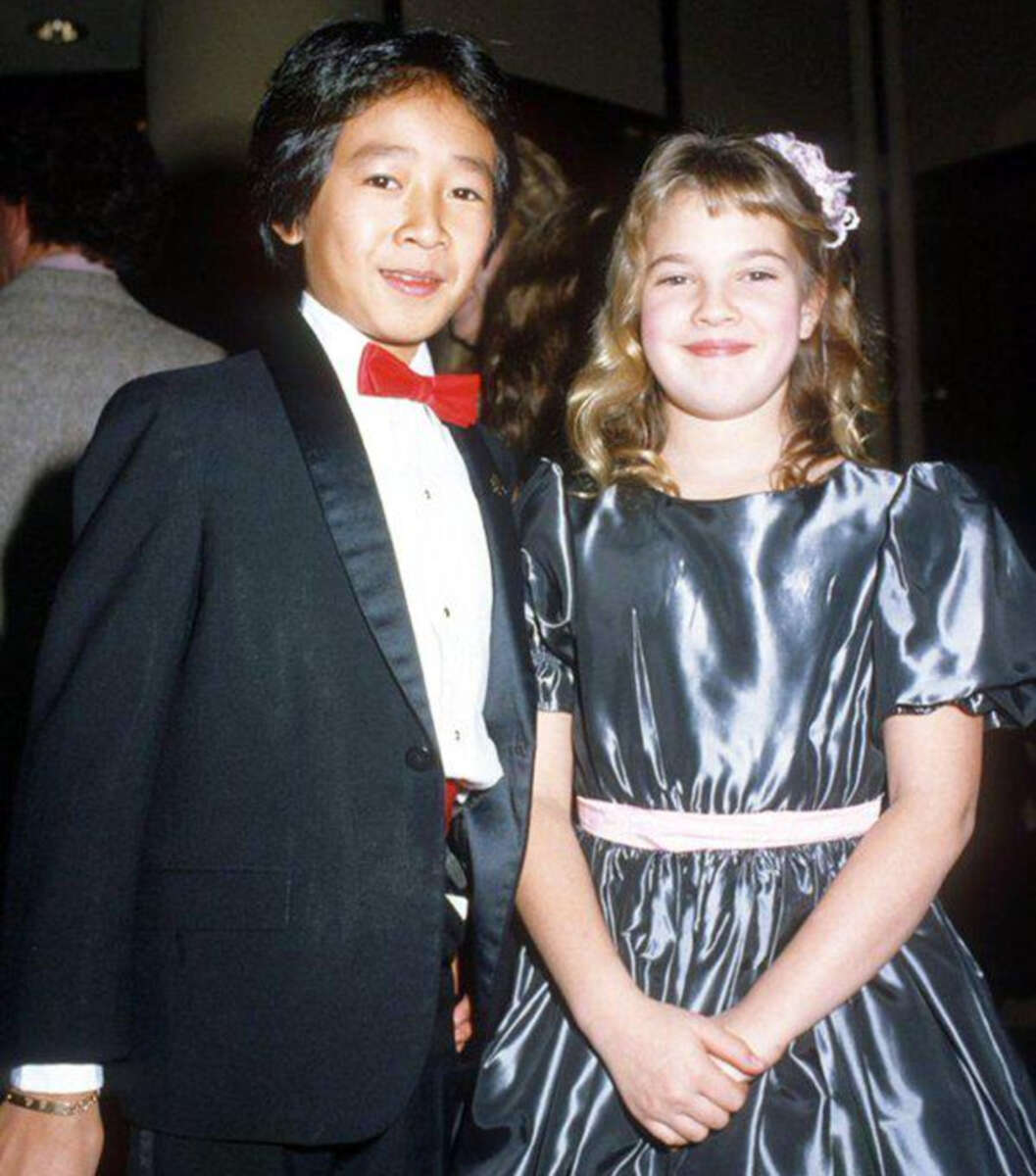 28. Drew Barrymore with Ke Huy Quan in 1985