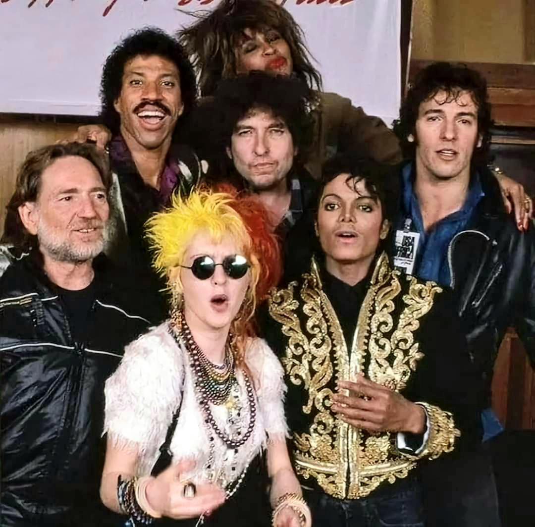 30. Willie Nelson, Lionel Richie, Tina Turner, Bob Dylan, Cyndi Lauper, Michael Jackson, and Bruce Springsteen during the recording of We Are The World in 1985