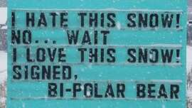 However, the comedic angels of the world take it upon themselves to light up our temporarily darker worlds with their own servings of peak funny signs comedy. These wintertime signs and messages certainly didn’t miss.